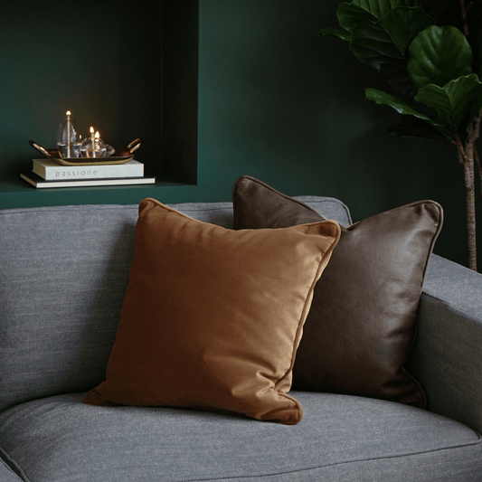 Mocha Leather/Velvet Toss Cushion
