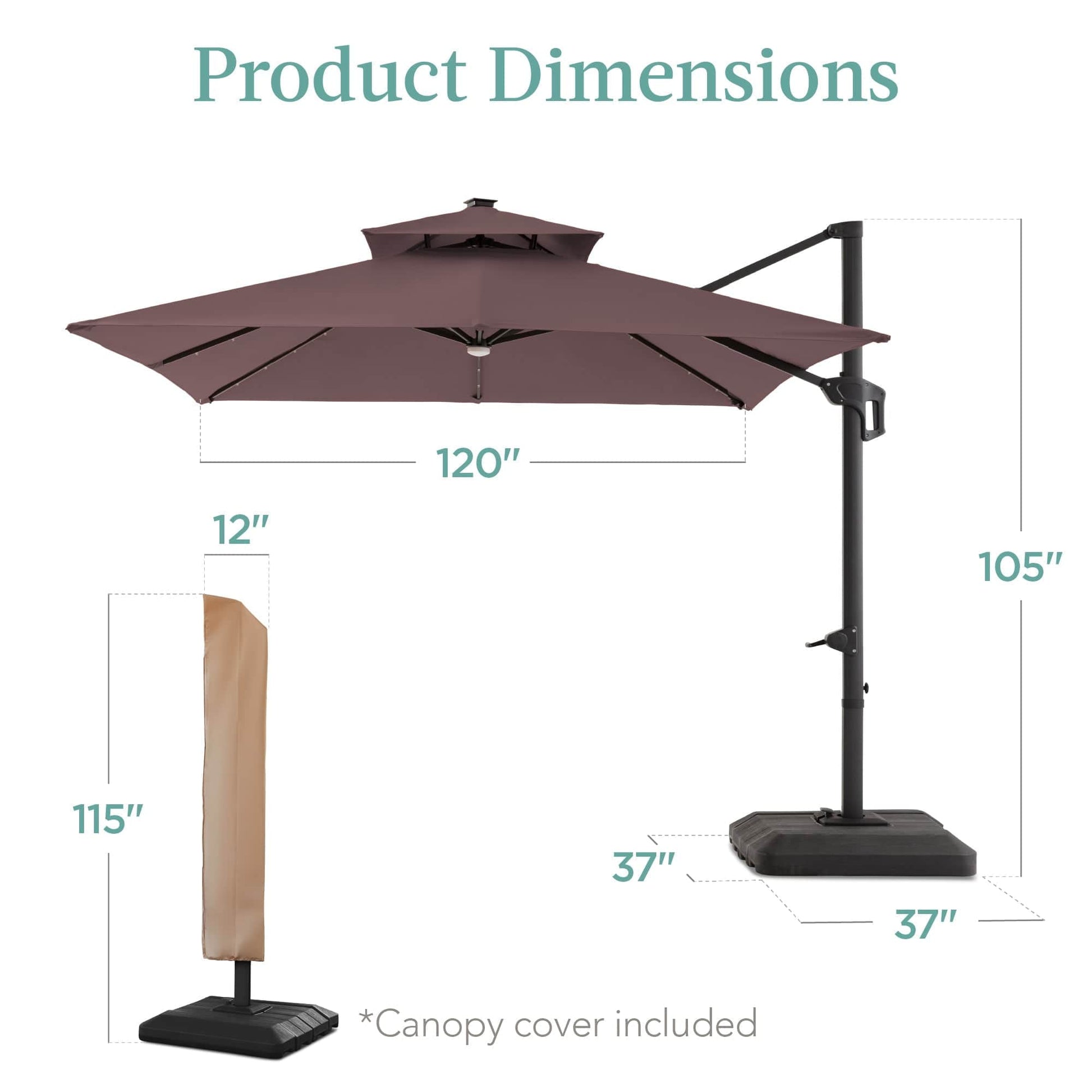 Premium 2-Tier Cantilever Offset Umbrella with 360° Rotation and LED Lights - 10x10ft
