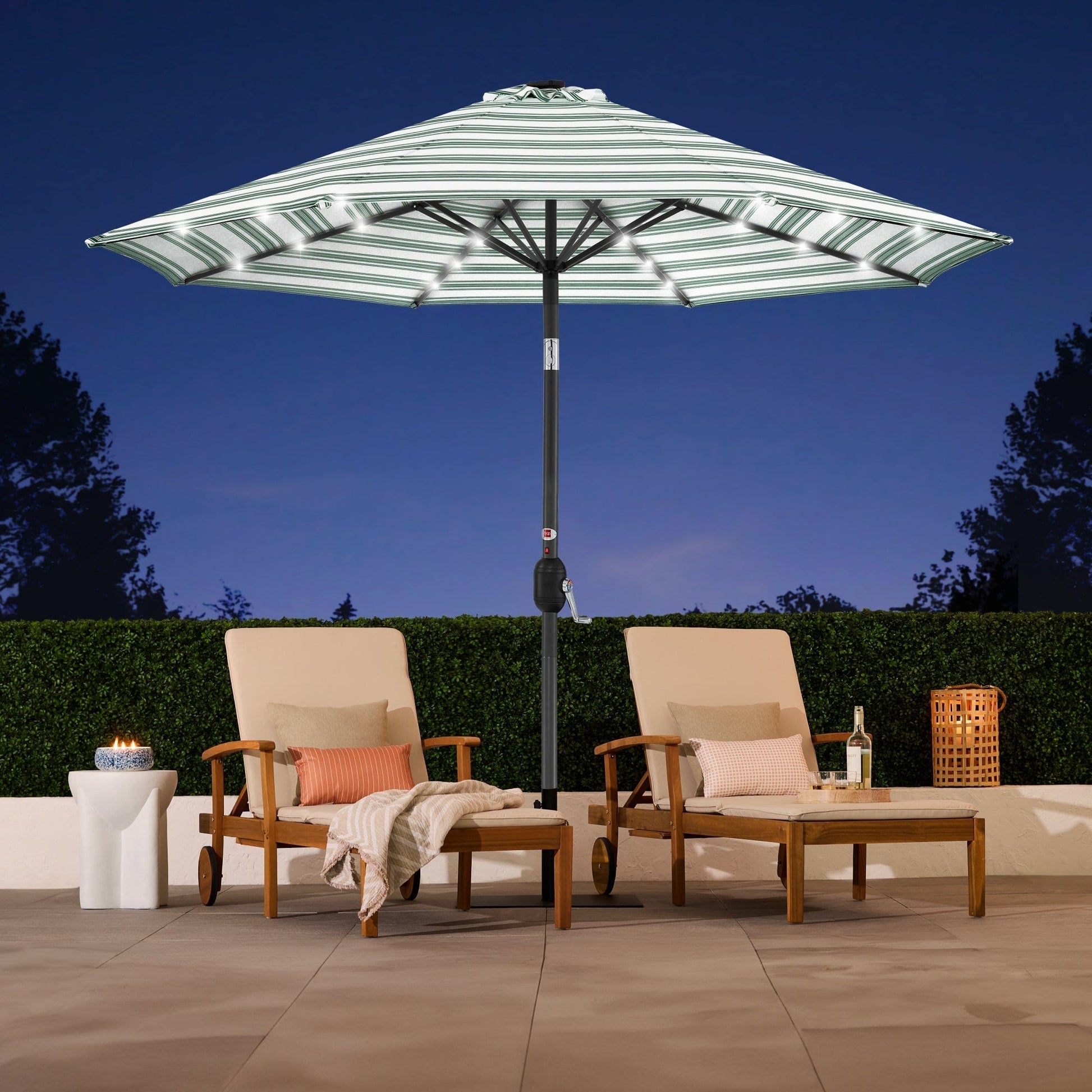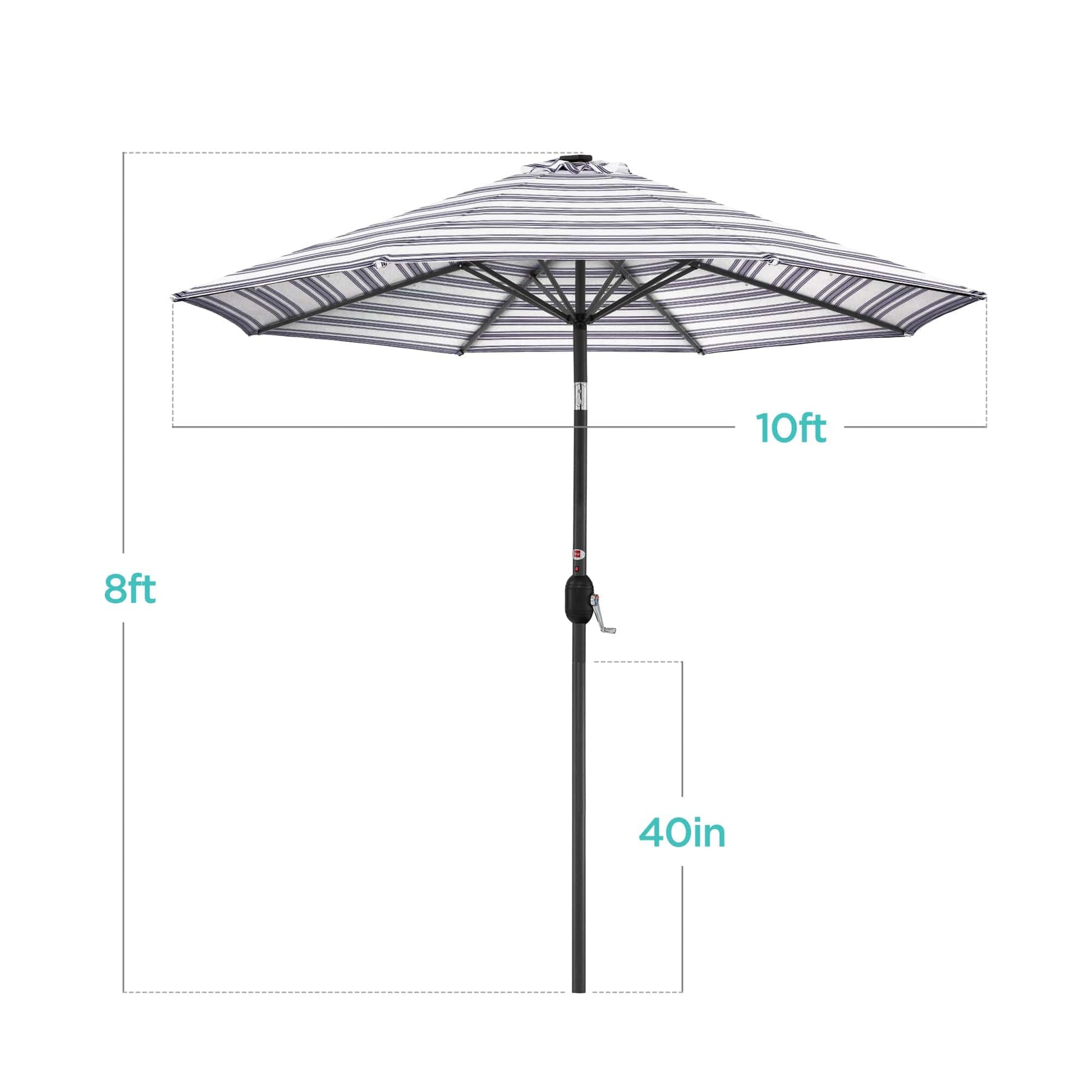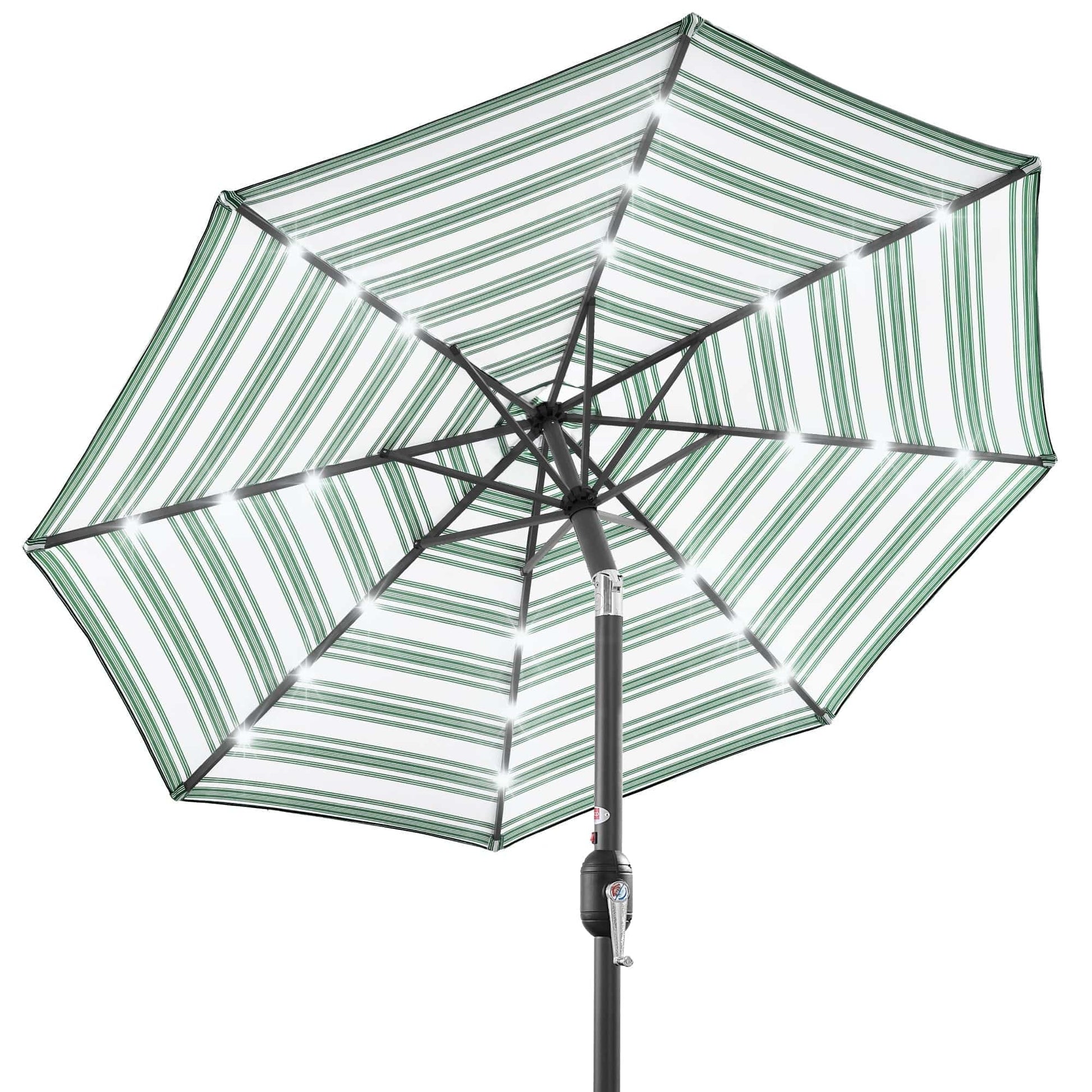 Solar LED Lighted Striped Patio Umbrella w/ Tilt Adjustment - 10ft