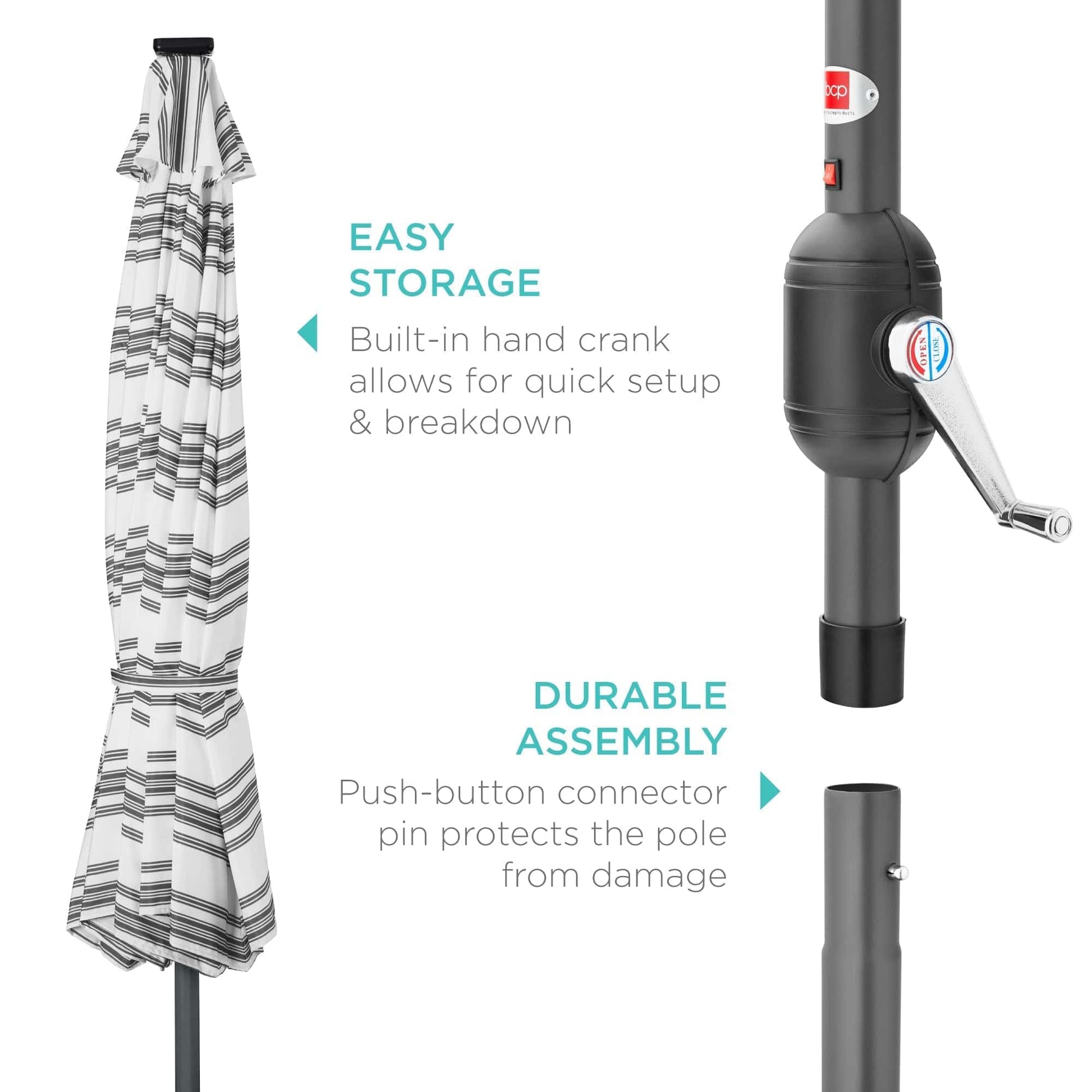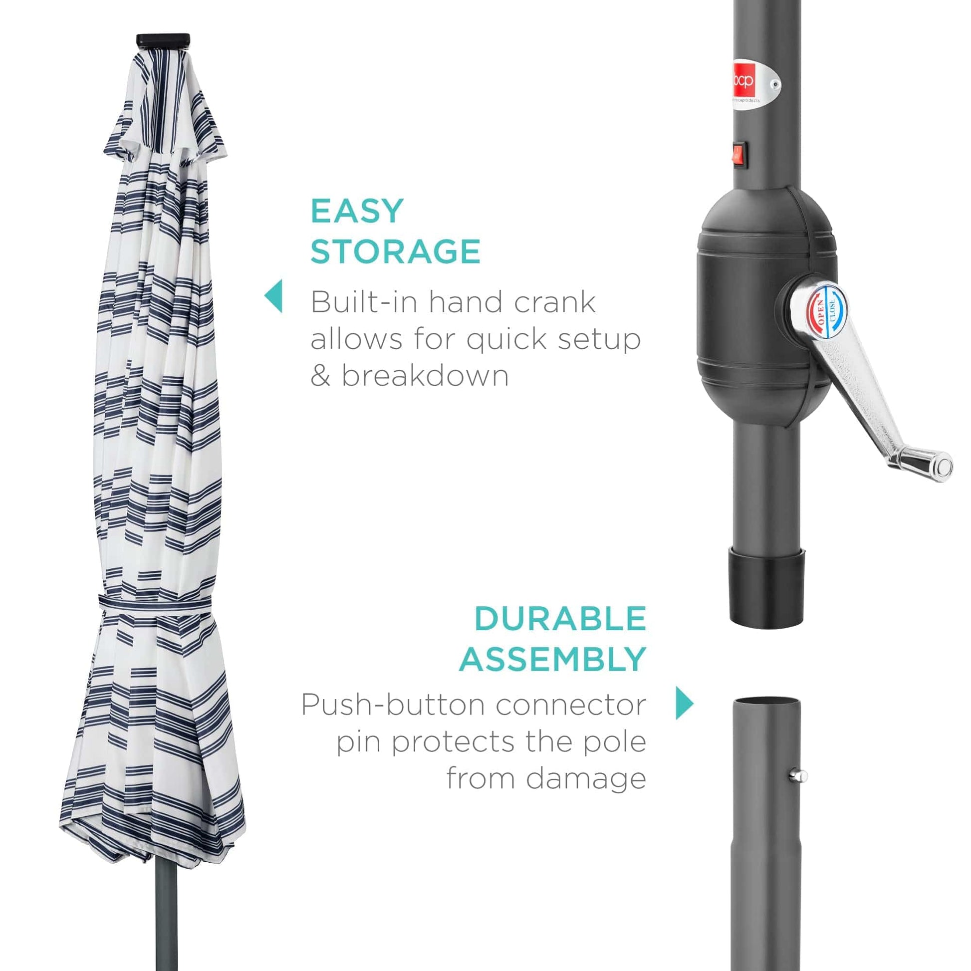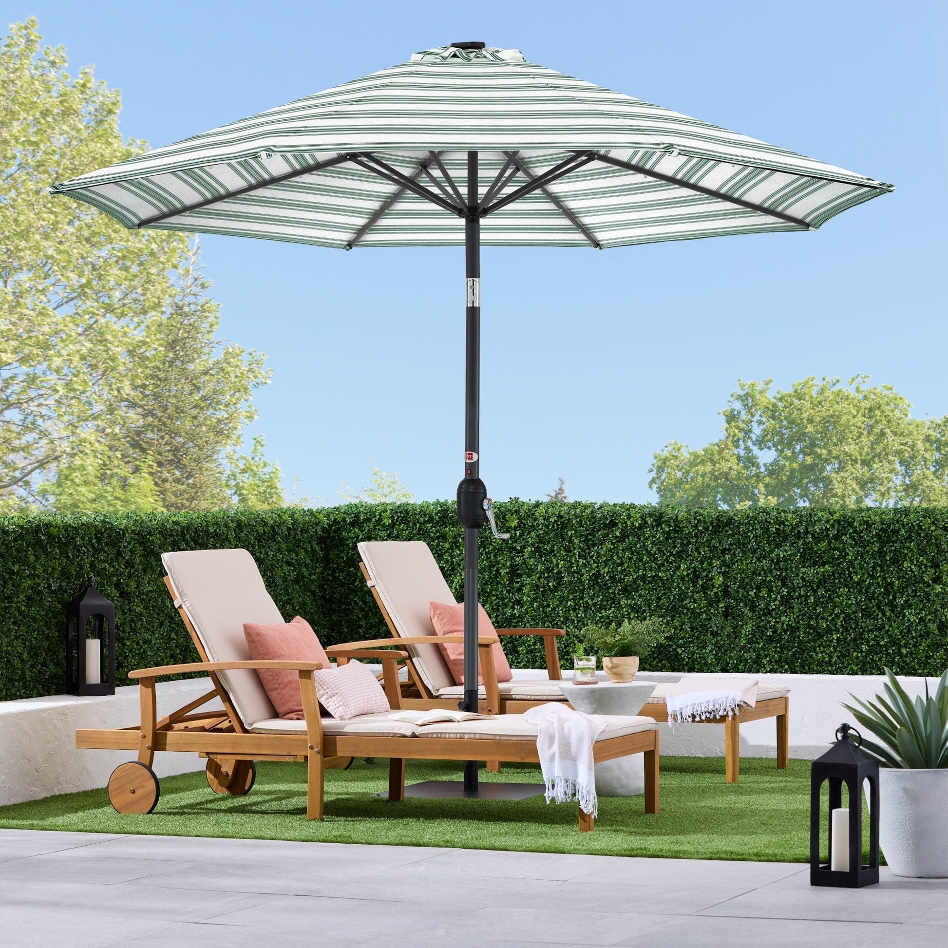 Solar LED Lighted Striped Patio Umbrella w/ Tilt Adjustment - 10ft